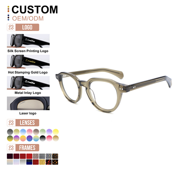 Moda nuevo estilo Retro forma redonda acetato anteojos Anti luz azul remache decoración acetato marco óptico